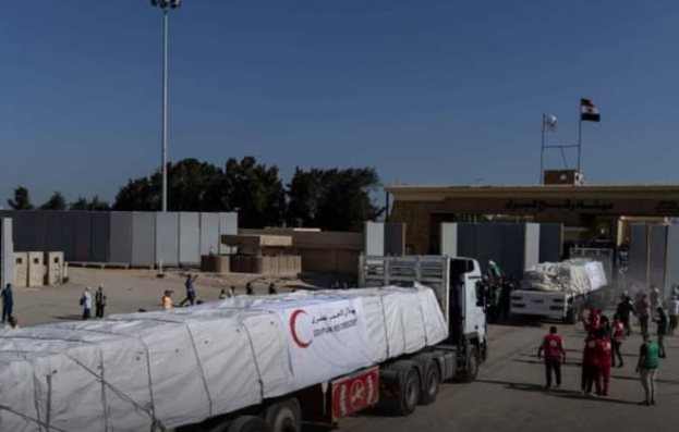 An ga manyan motoci ɗauke da kayan agaji na shiga ta kan iyakar daga Masar zuwa Gaza.